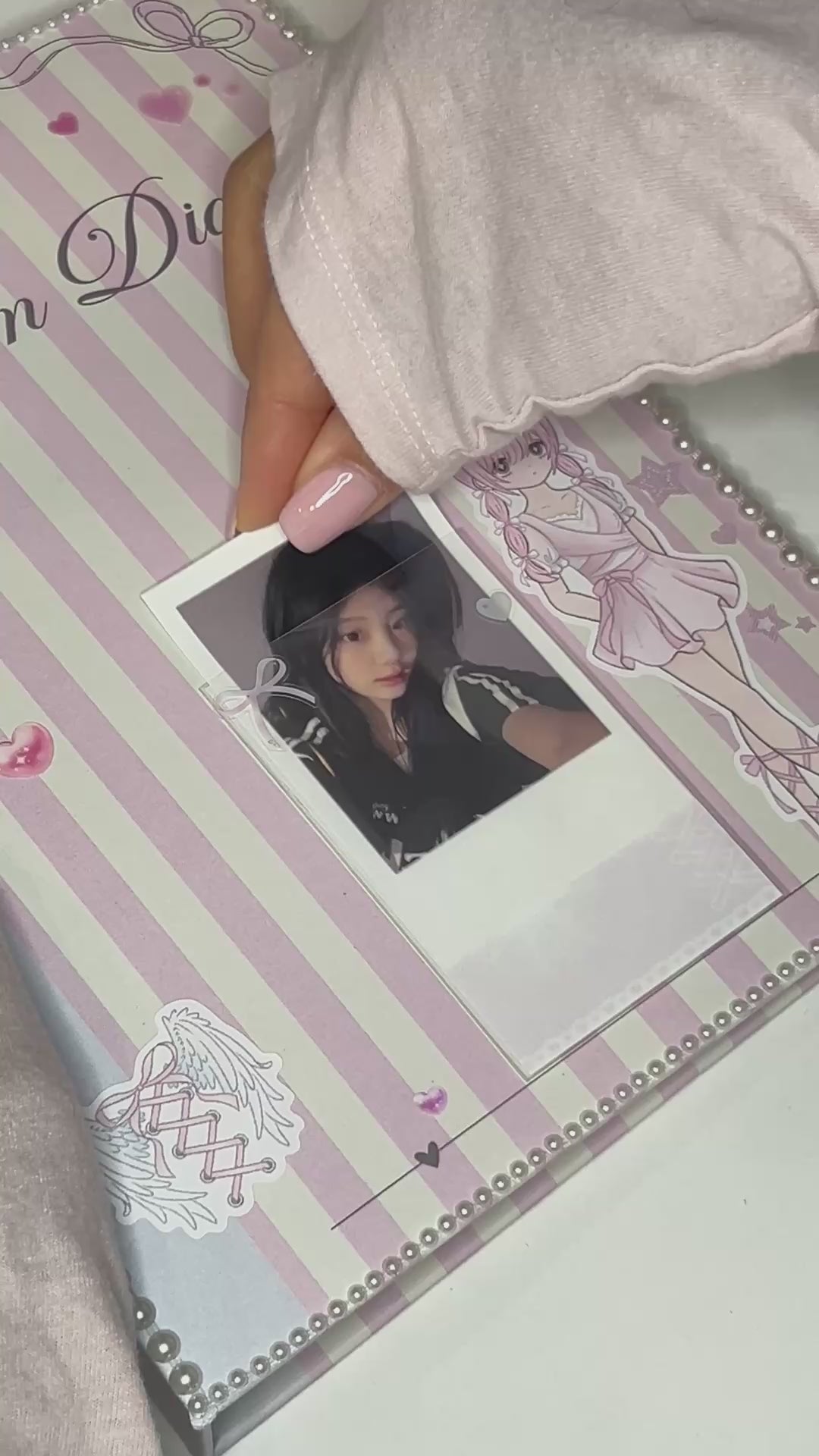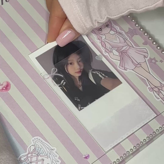 For those who have always wanted a cute decorated binder. These hand decorated Dream Diary Binders are the perfect way to make your collections unique ! The "love.zip" binder features sticker deco on the front and inside covers. A unique sleeve attachment is featured on the inside cover as a fun way to display for favorite idol photo !